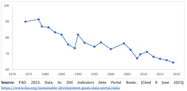 - For instance, in Eastern and South-Eastern Asia, the contribution of sustainable fisheries to GDP fell from 1.06% in 2011 to 0.80% in 2019 due to declining stock sustainability in the Pacific Ocean.