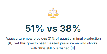 Recent assessments reveal a concerning trajectory for global fish stocks. For the first time in history, farmed seafood production has surpassed wild capture, yet overfishing of wild fish stocks continues to increase, and the number of sustainably fished stocks is declining.