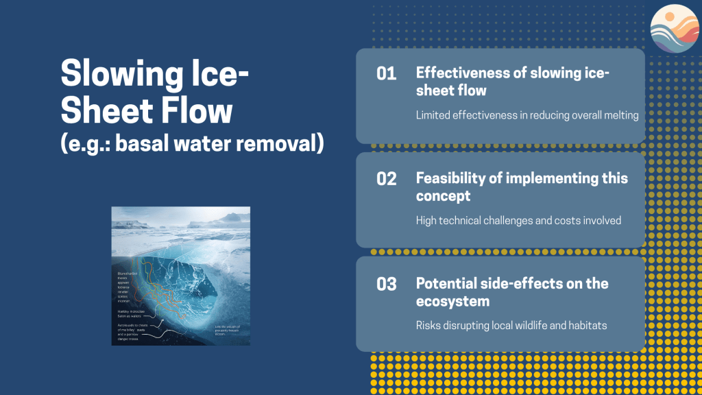 - Slowing ice-sheet flow (e.g., basal water removal)