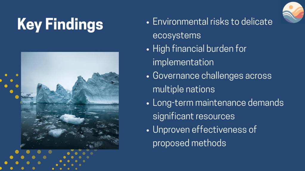 Their conclusion: none of these ideas are responsible or feasible options “in the coming decades”; several carry predictable harm to fragile polar ecosystems, require hundreds of billions up-front plus decades of maintenance, and would almost certainly distract from urgent decarbonization.