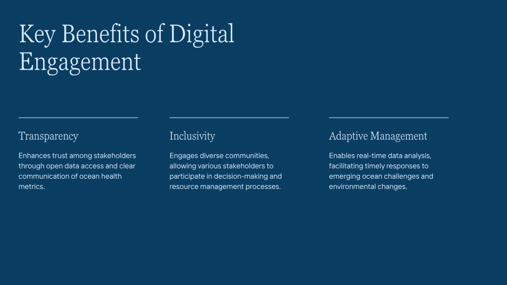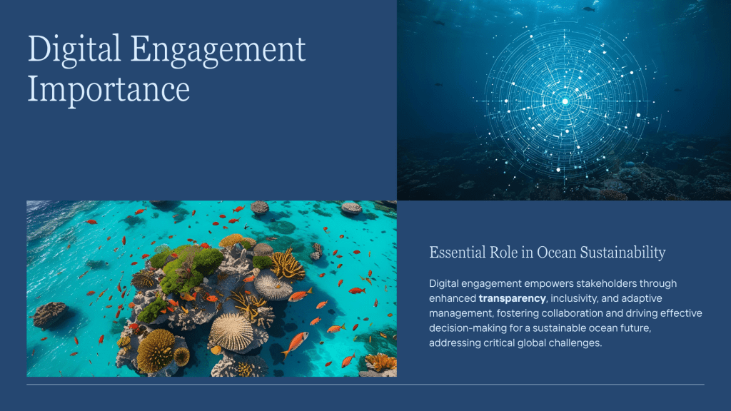 | Financial Planning | Secure funding and align resources. | Use data dashboards to transparently demonstrate the ROI of sustainable ocean investments and track resource allocation to priority areas. |